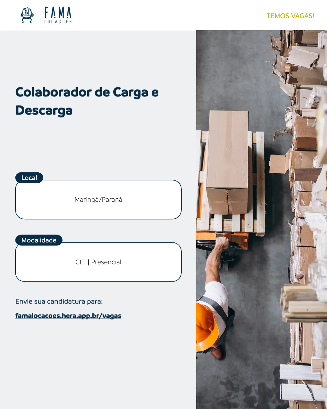 Buscamos um profissional proativo e responsável para integrar nossa equipe. A função envolve atividades de carregamento e descarregamento de mercadorias (puffs, sofás, bistrôs, mesas, aparadores e outros), organização do local de trabalho e auxílio em outras atividades da área.